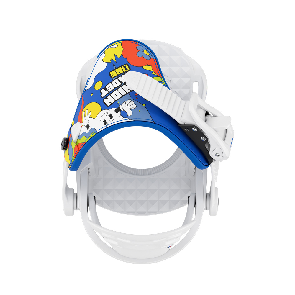 What is this? A binding for ants? No, this is the Cadet One kids' snowboard binding. Union's smallest binding offering of all time. Perfect for your little one's first time strapping in at the mountain or in the living room.