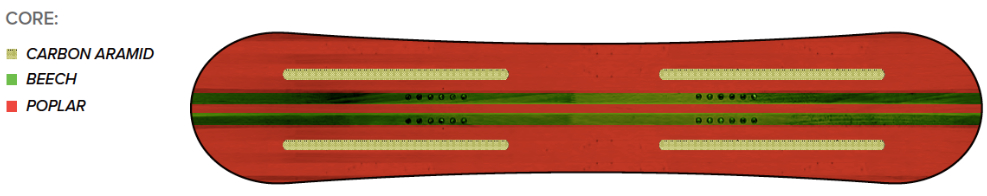 • 2 x 30mm CARBON ARAMID BOOSTERS – carbon strips along the insert area extended to the board tips increase power and responsiveness while remaining very light. Aramid additives improve vibration absorption and board durability.