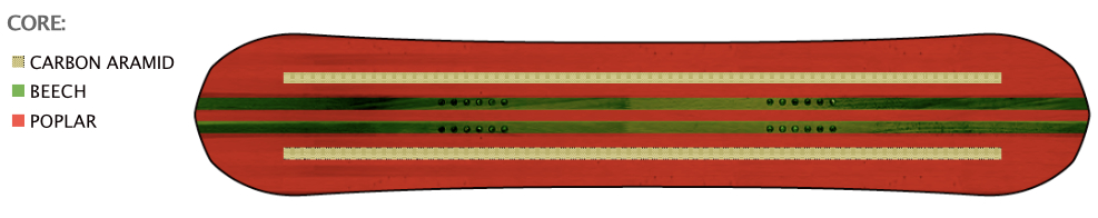 • 2 x 30mm CARBON ARAMID BOOSTERS – carbon strips running the full length of the board – increase power and response while staying lightweight. Aramid additions improve vibration dampening and board strength.