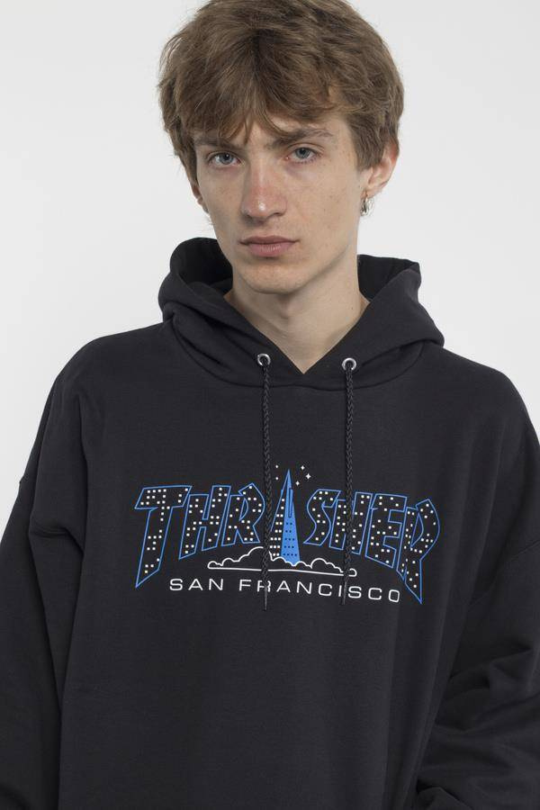 - na piersi duża grafika z motywem z San Francisco wykonana metodą sitodruku