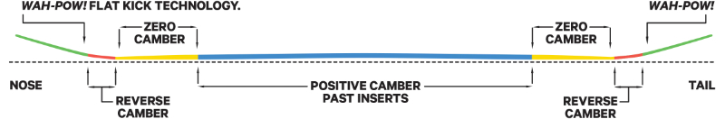 • CAMBER: RESORT V1 - Profil RESORT V1 w pełni wykorzystują zalety tradycyjnego, zerowego oraz odwróconego camber’a. Ta konstrukcja nowej generacji pozwala uzyskać pop i reakcję deski z tradycyjnym camberem ze wszystkimi przewidywalnościami i łatwą inicjacją skrętu cambera zerowego i rockera.