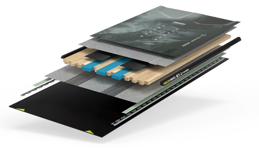 - MEGACARBON™ - szerokie pasma włókna węglowego wplecione w trójosiowe włókno szklane po obu stronach rdzenia. Znane ze swojej sztywności, wysokiej wytrzymałości na rozciąganie, niskiej wagi, wysokiej tolerancji na temperaturę i niskiej rozszerzalności cieplnej, włókno węglowe jest jednym z najpopularniejszych materiałów stosowanych w dzisiejszych wysokowydajnych modelach.