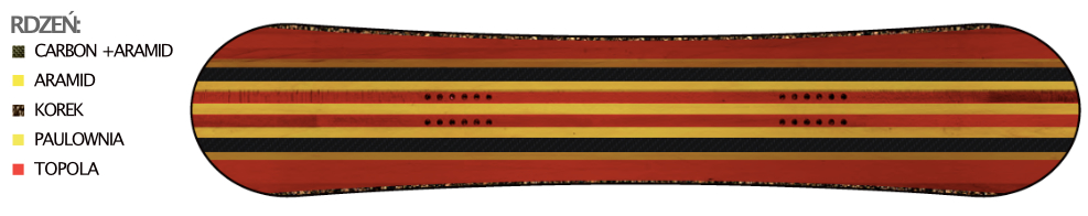 - SIDECUT: RADIAL - kształt krawędzi, który charakteryzuje się wycinkiem kształtu krawędzi z tego samego łuku, pozwala to rozpocząć i zakończyć zakręt na tym samym łuku. Dzięki wycięciu z pojedynczego łuku, deska jest bardziej przewidywalna, co zwiększa poczucie pewności, płynnie prowadzi podczas całego łuku i jest łatwa w kontrolowaniu. Co więcej klasyczny radial jest efektywny pod względem energii i wydajności. Umiejętnie zaprojektowany promień skrętu wspiera naturalny ruch snowboardzisty, co pozwala na dynamiczne i płynne manewry. Konstrukcja radial jest ceniona za swoją płynność, łatwość sterowania oraz uniwersalność, co czyni ją popularnym wyborem wśród snowboardzistów o różnych umiejętnościach i preferencjach jazdy.