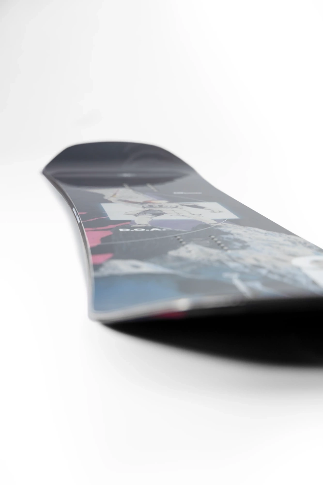 D.O.A. popularności zawdzięcza swojej uniwersalności. Profil deski to bez zmian RESORT V1, czyli camber z płaskimi miejscami kontaktu ze śniegiem, co zapewnia świetną kontrolę na krawędzi, łatwą inicjację skrętu i dobrego pop’a!
