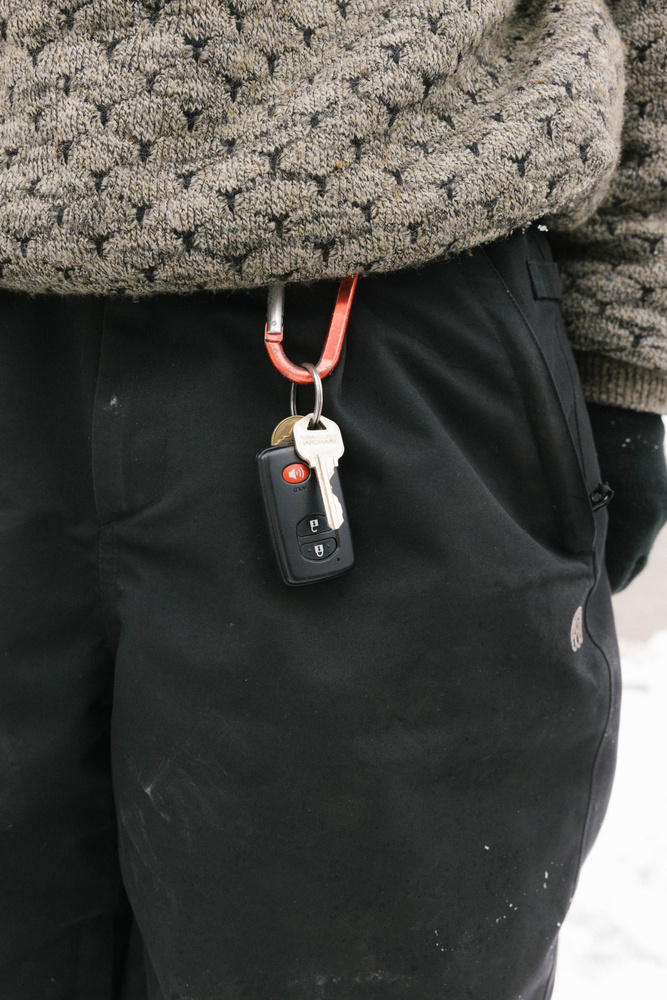 - Wewnętrzny klips na klucze w przedniej kieszeni — zapewnia bezpieczne przechowywanie kluczy na stoku.
